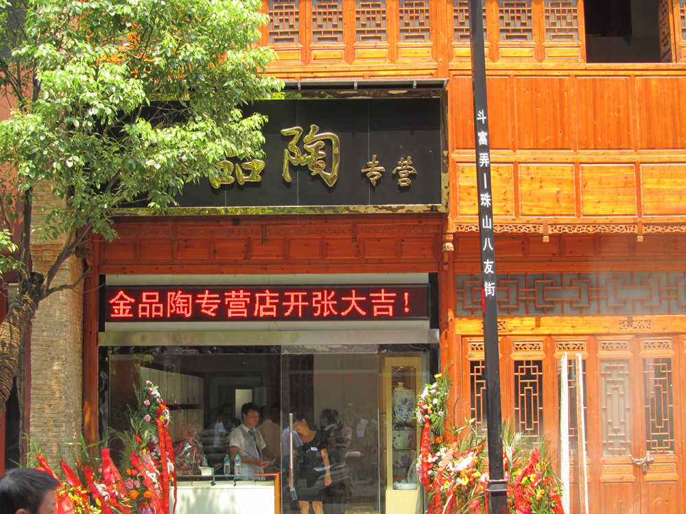 景德镇金品陶专营店于七月二十五日正式开始营业。专营店的开设是公司应对复杂市场变化做出的又一决策,是公司对外开放的一个窗口 ,也是公司对市场进行的一次尝试和摸索,同时专营店的开设也满足广大消费者对高档日用陶瓷,和名家艺术瓷及收藏瓷的需求。