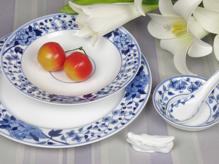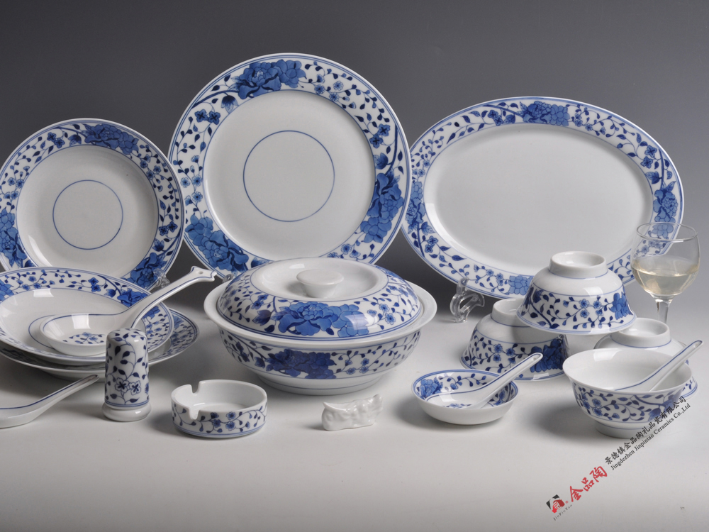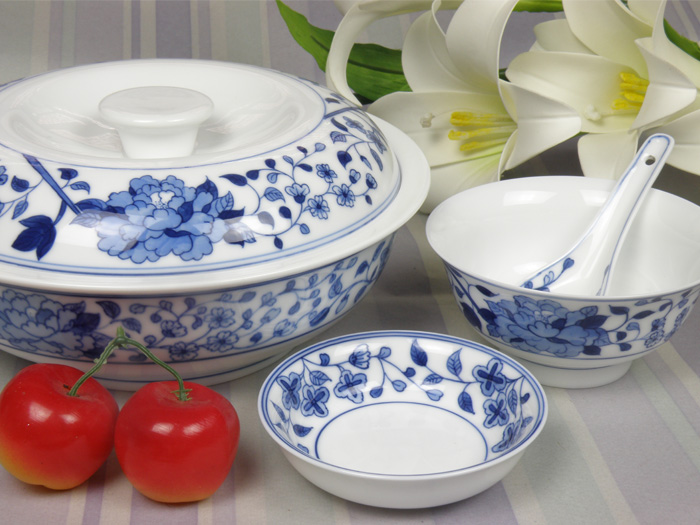 民族碗*10件,8"汤盘*10件,针匙*10件,筷架*10件,3"碟*10件,品锅*1套,10"平盘*1件,12"鱼盘*1件,牙签筒*1件,烟灰缸*1件,饭匙*1件。