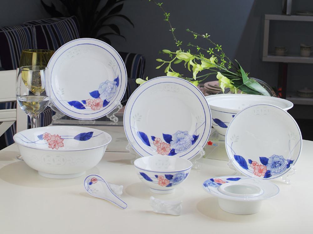 46头手工玲珑釉下手绘中餐具--丰瑞