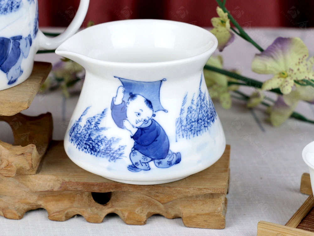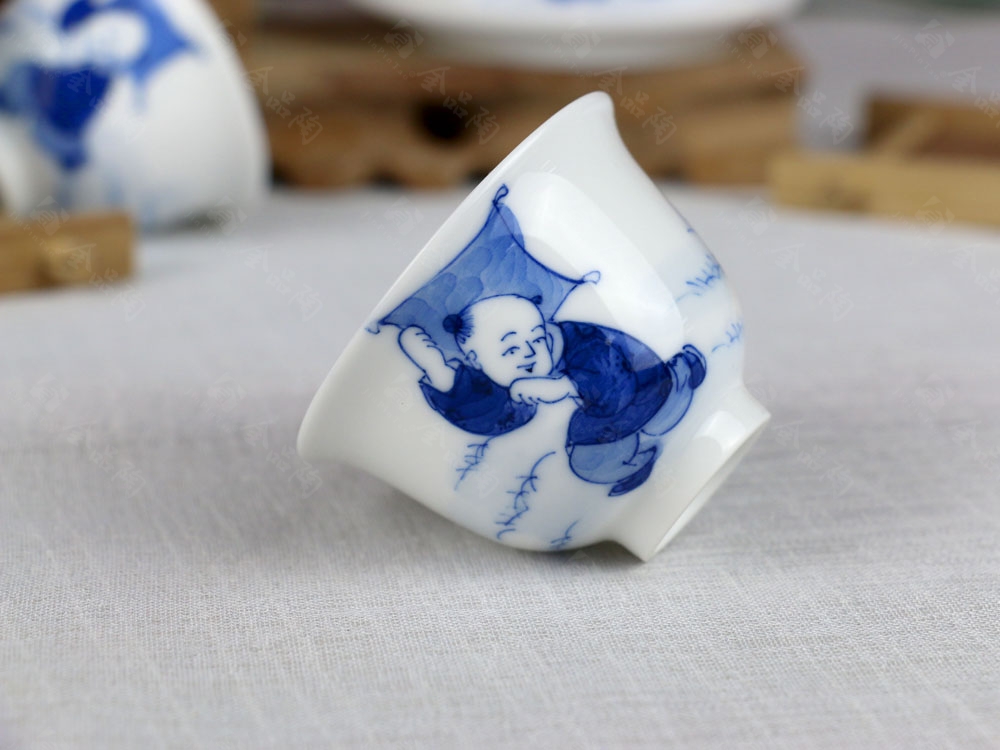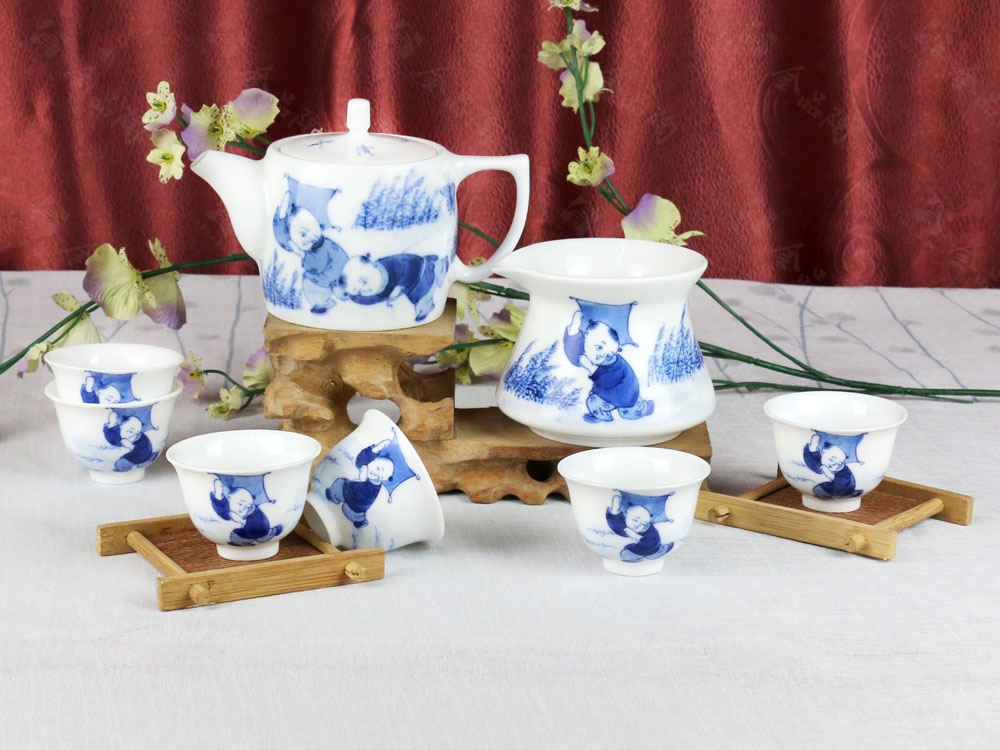 8头手绘青花茶具---童趣