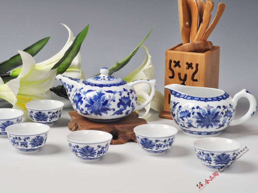 8头手绘青花工夫茶具--洋莲